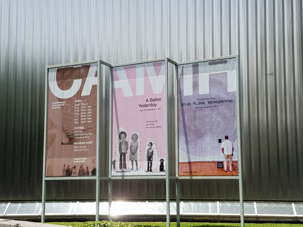 Well, we didn’t just stay inside at home; we opted for a cultural trip to the Houston Museum District with some friends. Now the Museum District is huge – 19 museums huge! We had to figure out a way to narrow it down and not break the bank. Some research led us to a cool website, Houston on the Cheap, and we realized that July 29 was The Museum Experience Day: Zone 3. So our Saturday afternoon was spent at The Museum of Fine Arts Houston (MFAH) and the Contemporary Arts Museum Houston (CAMH), both of which had free admission that day!