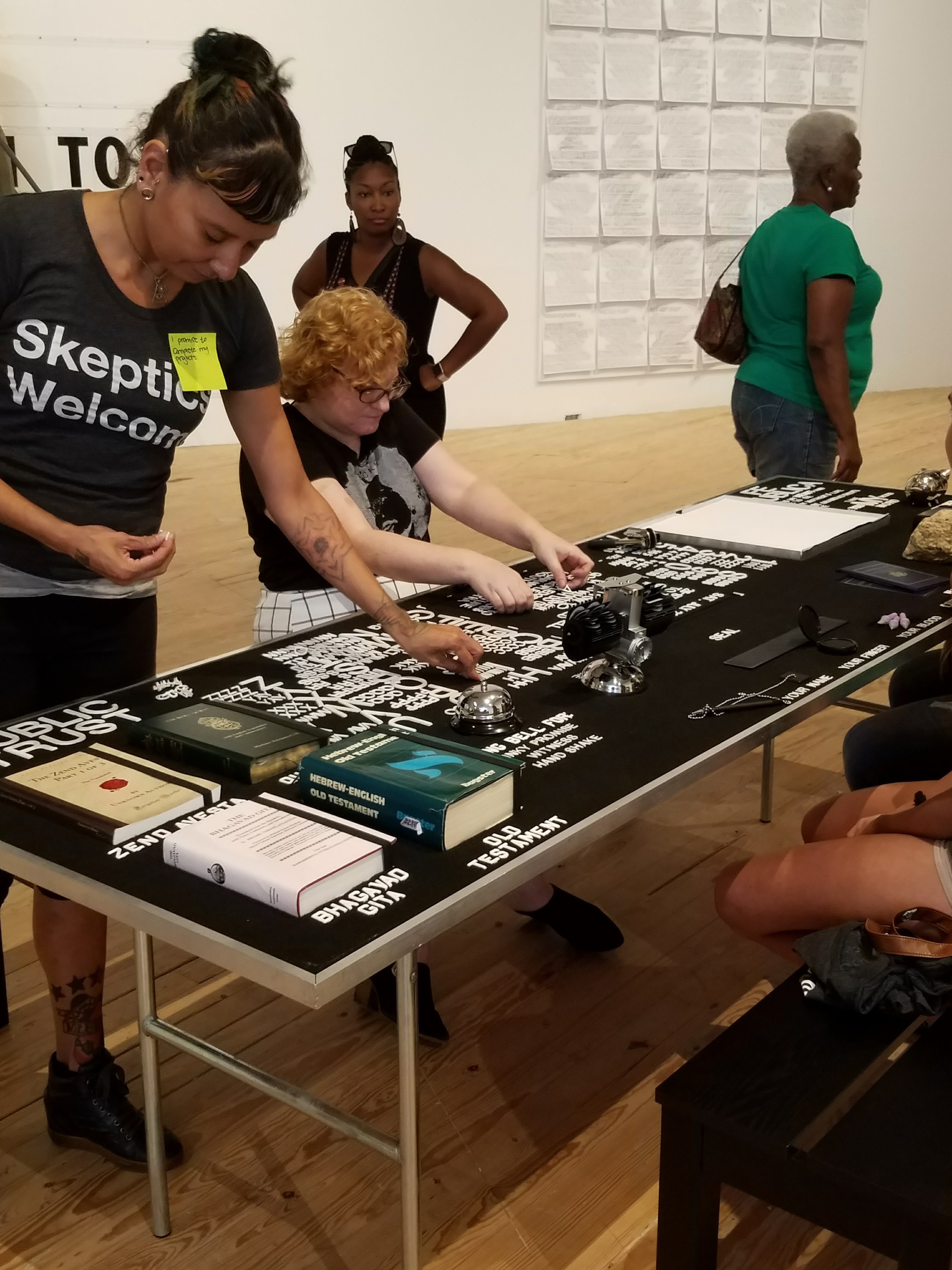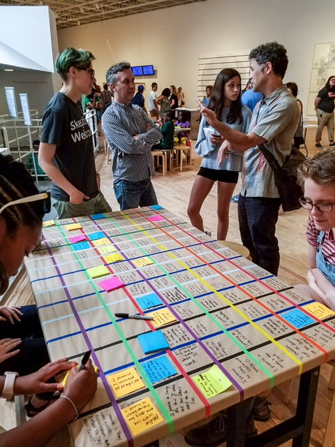 After visting the MFAH, we crossed the street and ventured into the CAMH where we had the opportunity to meet artist Paul Ramírez Jonas (standing right). His solo exhibit at the CAMH, Atlas, Plural, Monumental, a 25 year survey, was not only thought-provoking and informative, but incredibly insightful. We took part in the exhibit and wrote a promise on a post-it note and also took someone else’s promise from the table that we wanted to do.
