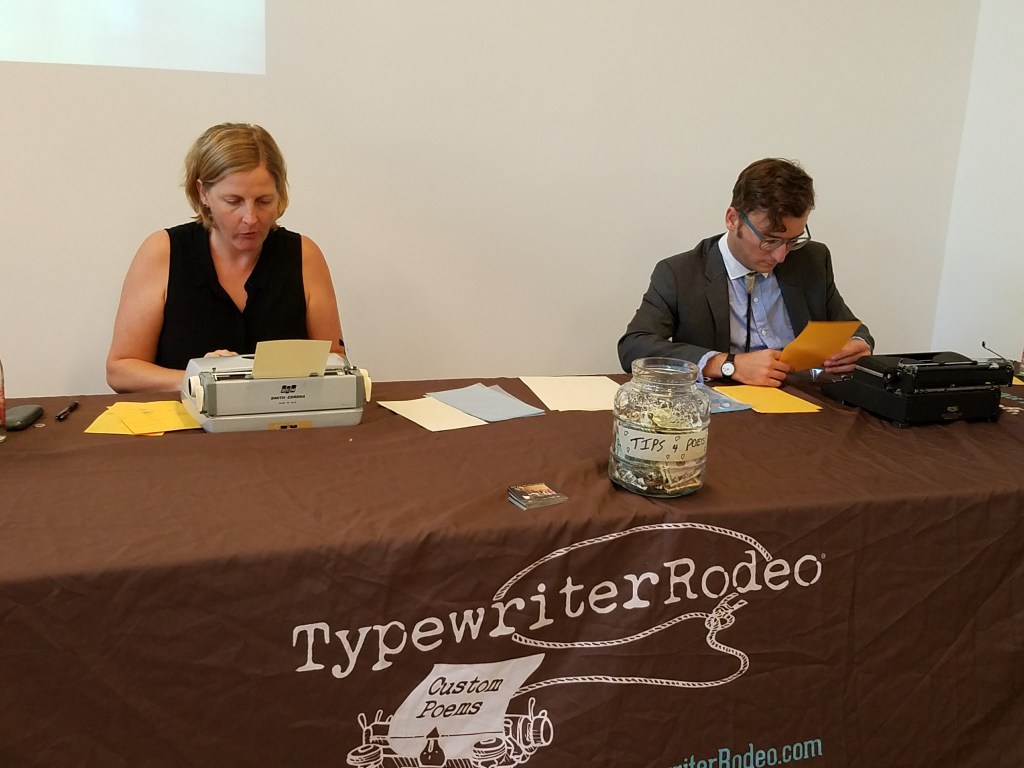 Downstairs in the CAMH were some more cool works, including the Typewriter Rodeo – poem-makers hailing from Austin who create a custom poem on any topic you choose using an old-school, manual typewriter. Give ’em a word… any word!