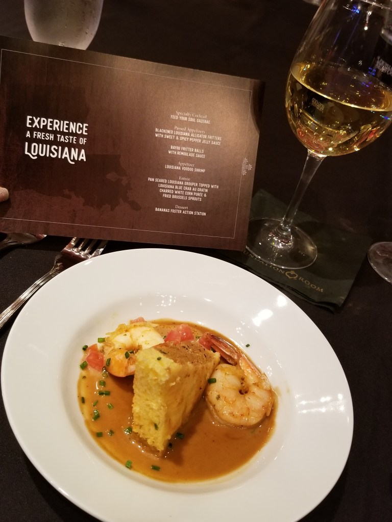 - Entree: Pan-seared Louisiana Grouper