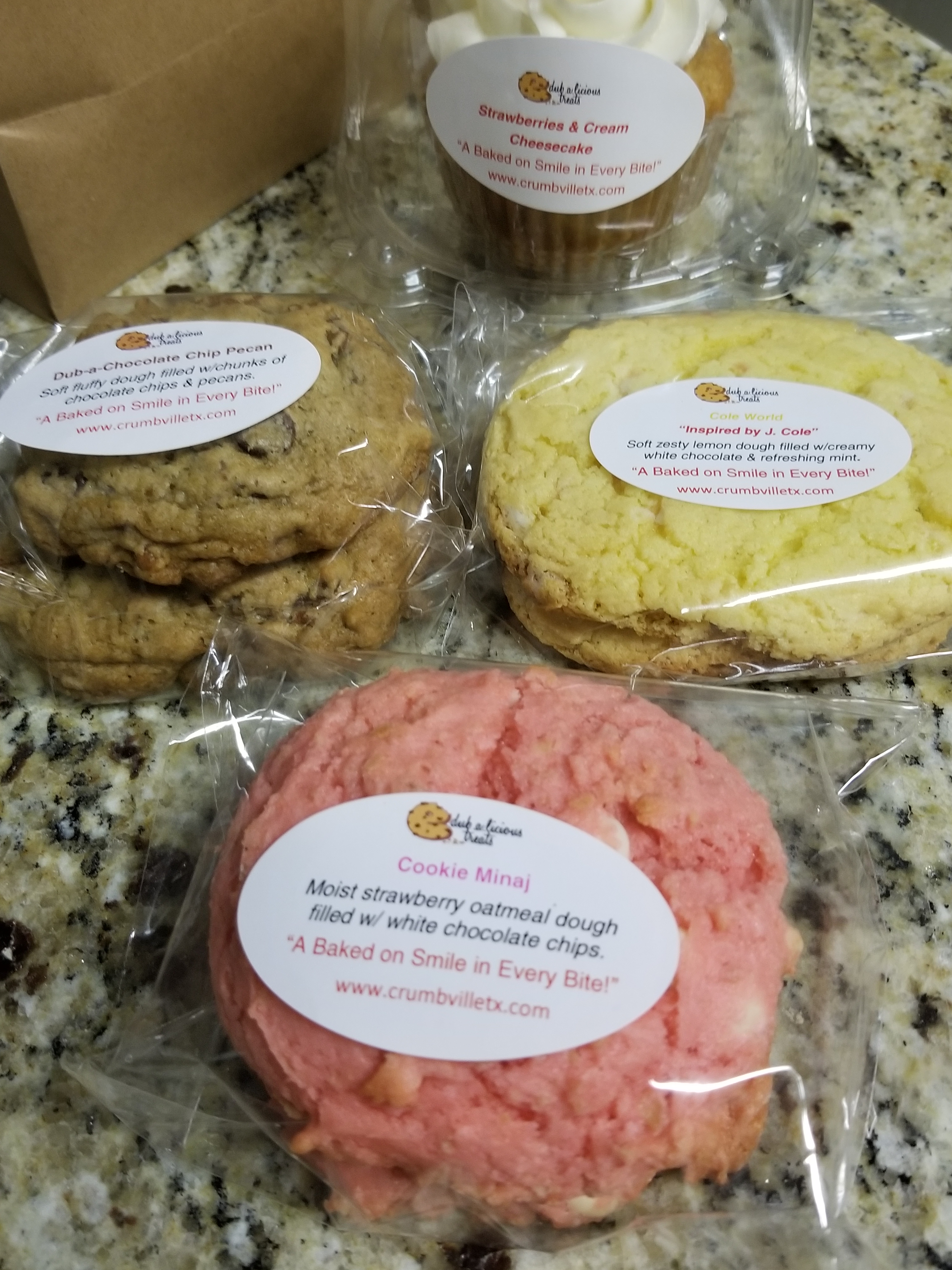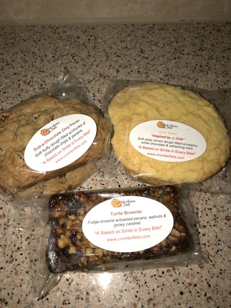 And the cookies don’t have regular names. Nope, there’s a story behind some of them. Take the “Chance the Cookie” for example. The description of the cookie said it’s inspired by Chance the Rapper. Ella explains, “it’s a butter cookie with Kit Kats, graham crackers and cashews … Kit Kats because he’s in a Kit Kat commercial, graham crackers because he won a Grammy and cashews because I think he’s nuts that he’s getting all this cash as an unsigned artist.”