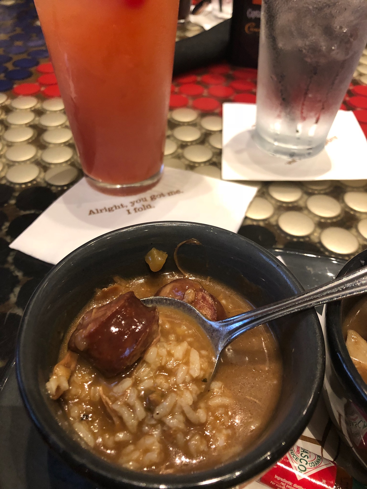 And we know what some of you may be thinking… what’s chicken and sausage doing in that gumbo? Where’s the seafood?