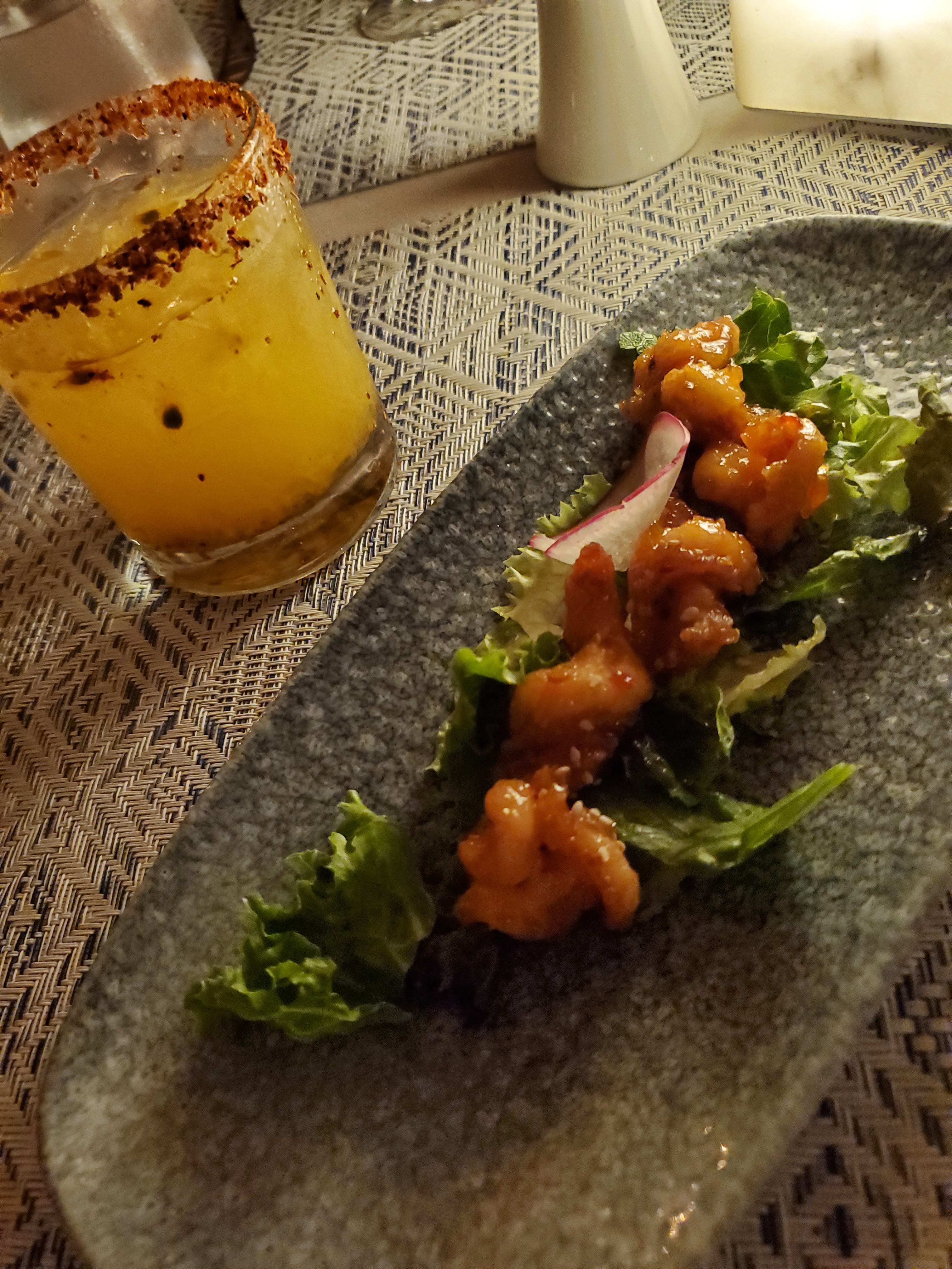 - Bluewater Grill – This restaurant is only open for dinner and it’s a vibe. Skyline views, dim lighting, upscale decor. Okay and the food – delicious! They had these little shrimp as an appetizer and they were so good, we ordered another round AFTER we have our main course. Service was amazing as well. Friendly, attentive, and quick. We had dinner at this restaurant twice during our stay.